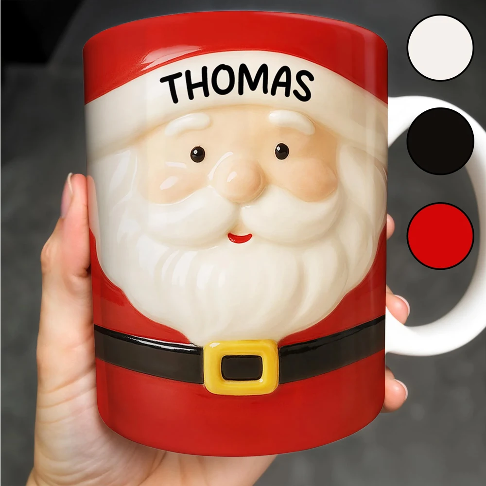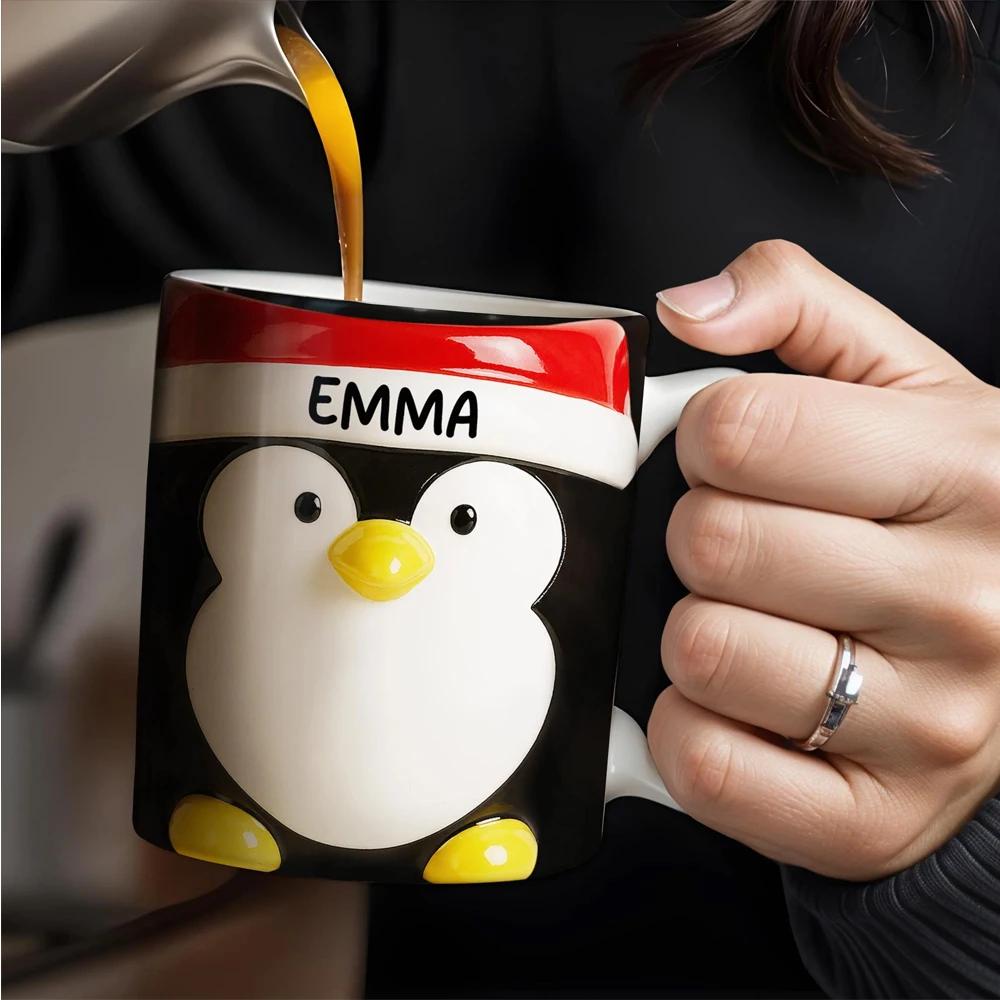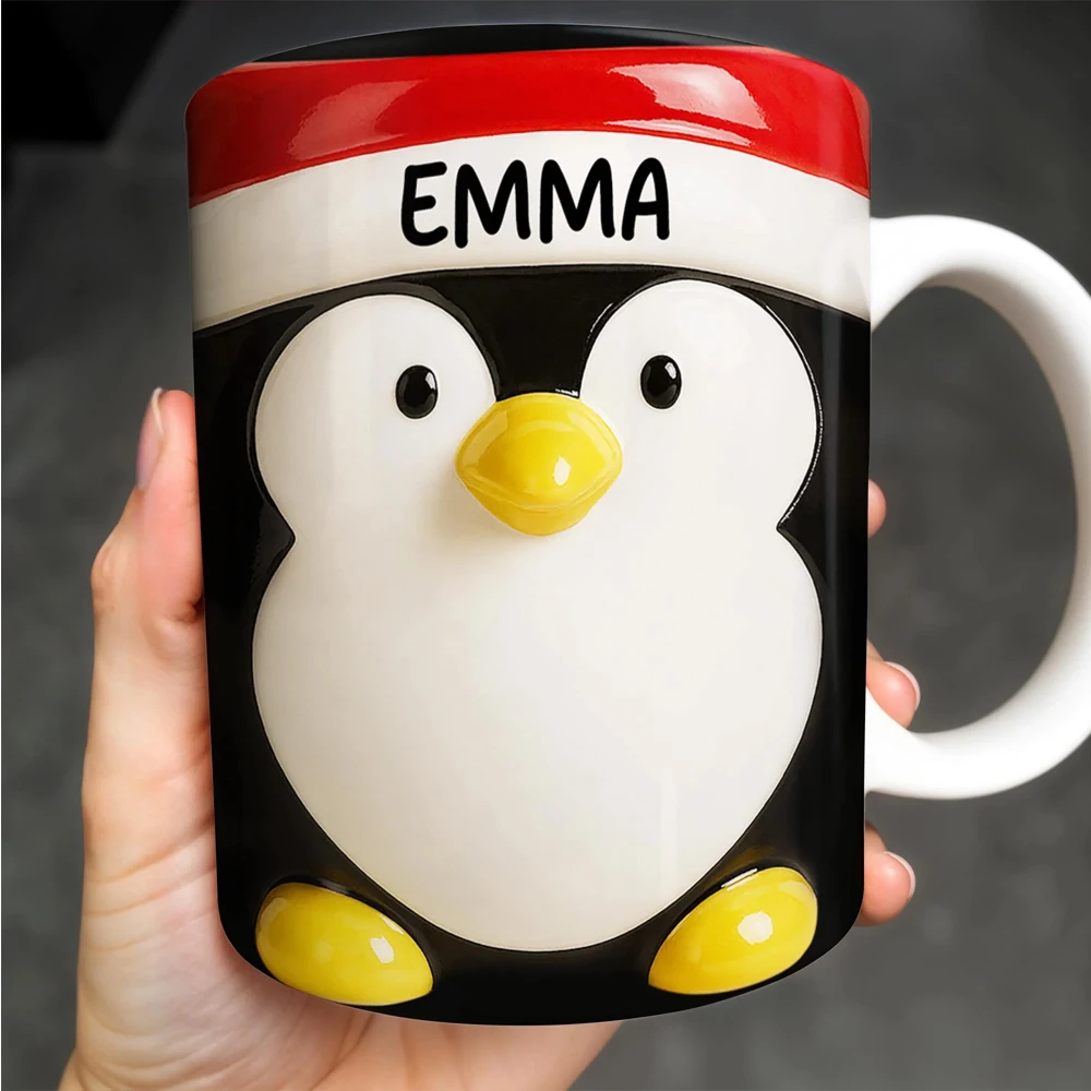 Personalized Christmas Ceramic Mug - Santa Penguin Snowman Design with Name Engraving, 12oz Eco-Friendly Coffee Cup